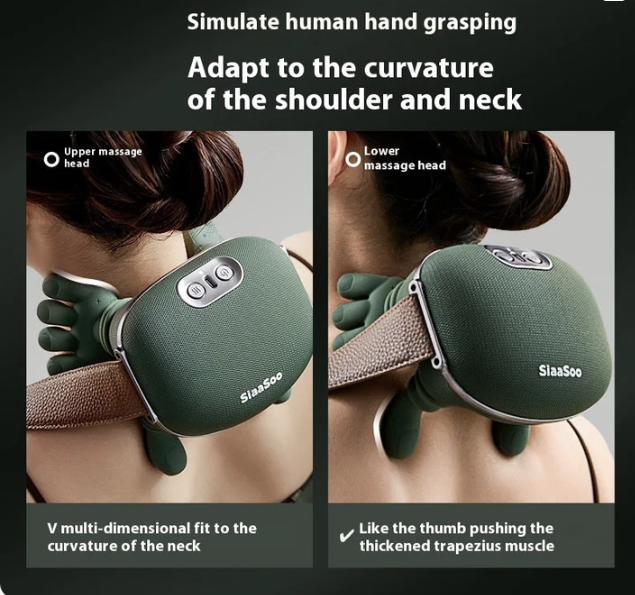 - The 3D bionic ergonomic design naturally follows the contours of your neck and shoulders for a secure, customized fit. Dual upper and lower massage heads simulate real hand grips and thumb pressure, while the soft silicone material enhances comfort and stability, preventing slipping or constant repositioning during use.